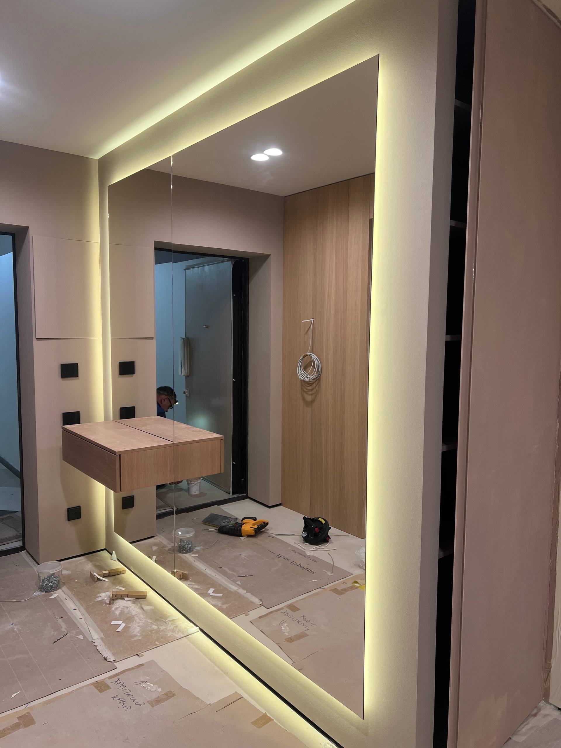 При работе с объектом под ключ (полностью зеркала в квартире, доме, офисе и т.д) выделяется менеджер проекта, с которым обсуждаются все вопросы и который всегда на связи. - МонтажМонтаж делаем сами!